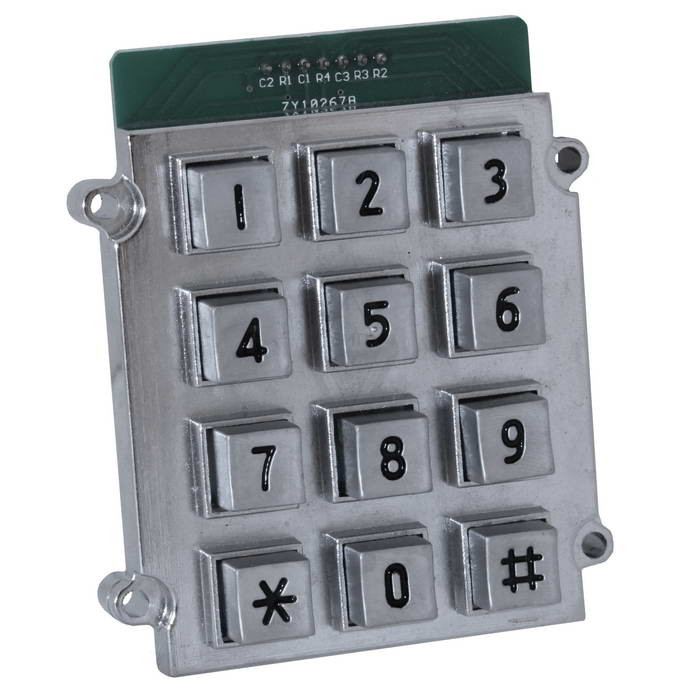 Антивандальная влагозащищённая металлическая клавиатура RUICHI RPZ01-12-RM, pin, 12 клавиш, серебристого цвета, цинковое покрытие.