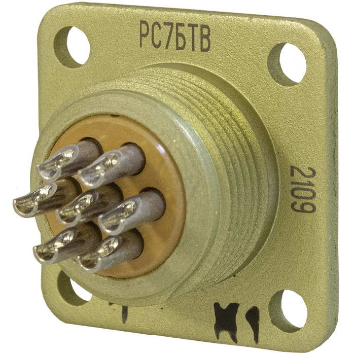 РС РС7БТВ розетка б/к КОПИР это низкочастотный низковольтный цилиндрический соединитель, предназначенный для внутреннего монтажа. Она используется в электрических цепях постоянного, переменного (до 3 МГц) и импульсного токов с максимальным рабочим напряжением 200 В. Эта розетка применяется для соединения и разъединения электрических цепей в радиоэлектронной аппаратуре специального и общего назначения.