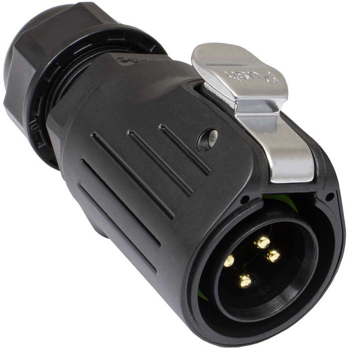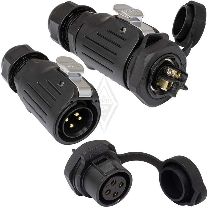 Герметичный разъем (комплект) RUICHI SF2011/P-4P, вилка (кабель) -розетка (панель), 4 контакта, винтовой зажим, диаметр входящего кабеля 5-12 мм, IP67 черный, является пылезащищенным и влагозащищенным. Он соответствует высокой степени защиты IP67, что гарантирует работу разъемов при длительном погружении в воду (более 30 минут) на глубину больше 1м.