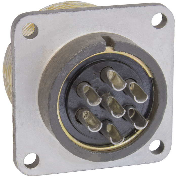 шр_сшр_2рт_2ртт ШР28П7ЭГ9 РОЗЕТКА это разъём цилиндрической формы, относящийся к группе низкочастотных низковольтных разъёмов. Он имеет 7 контактов и предназначен для соединения экранированных кабелей. Диаметр каждого контакта составляет 2,5 мм, а рабочая токовая нагрузка на каждый контакт — до 25 А. Общая токовая нагрузка на соединитель может достигать 155 А при напряжении переменного и постоянного тока до 850 В.