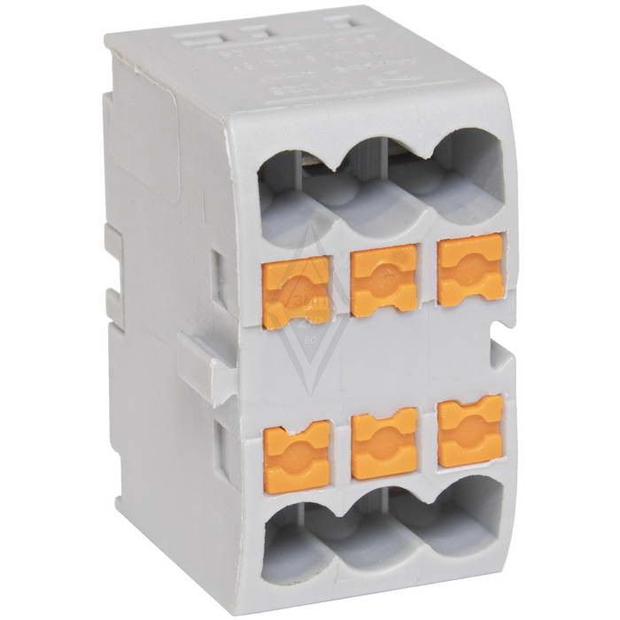 Распределительный блок (зажим блочный) на DIN-рейку RUICHI СМК 226A-3P, на 6 точек, 24 А, 690 В, цвет серый применяется для распределения нагрузки и управляющего тока.