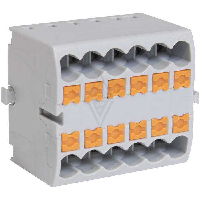 Распределительный блок (зажим блочный) на DIN-рейку RUICHI СМК 226A-6P, на 12 точек, 24 А, 690 В, цвет серый применяется для распределения нагрузки и управляющего тока.