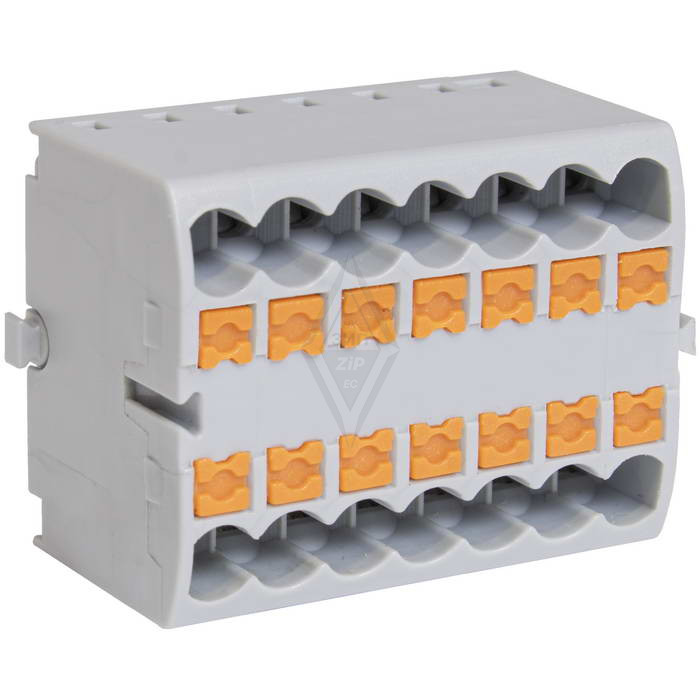 Распределительный блок (зажим блочный) на DIN-рейку RUICHI СМК 226A-7P, на 14 точек, 24 А, 690 В, цвет серый применяется для распределения нагрузки и управляющего тока.