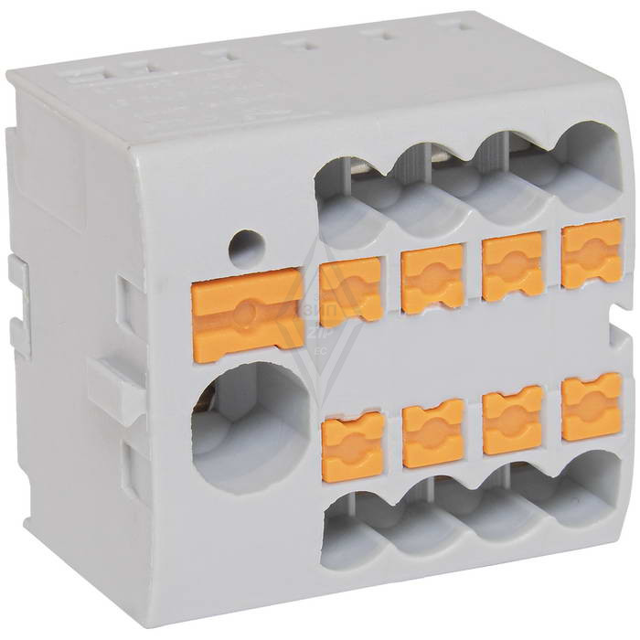Распределительный блок (зажим блочный) на DIN-рейку RUICHI СМК 227G-4P, на 8 точек, 1 входная точка питание, 24 А, 690 В, цвет серый применяется для распределения нагрузки и управляющего тока.
