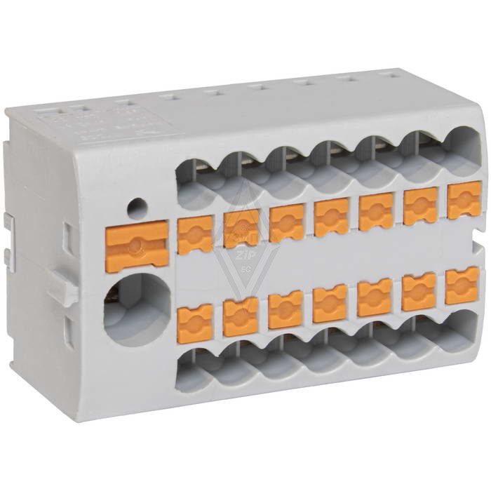 Распределительный блок (зажим блочный) на DIN-рейку RUICHI СМК 227G-7P, на 14 точек, 1 входная точка питание, 24 А, 690 В, цвет серый применяется для распределения нагрузки и управляющего тока.