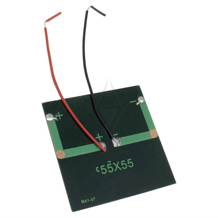 Фотоэлектрический модуль для солнечной панели RUICHI SP01, 55х55 мм, 0.5 А, 2 В, 1 Вт, выводы - провода - это солнечная батарея с повышенными характеристиками производительности и высоким качеством исполнения. Солнечный модуль произведен из новейших высокоэффективных монокристаллических солнечных элементов первой категории качества, что обеспечивает наивысшую надежность и долгий срок службы. Солнечные фотоэлектрические модули серии SP RUICHI отличаются превосходным соотношением цена/качество и могут использоваться в качестве составных компонентов для солнечных панелей для автономного освещения автодорог, пешеходных переходов, систем видео наблюдения, автономного электрооборудования, а также станционарных солнечных станций.