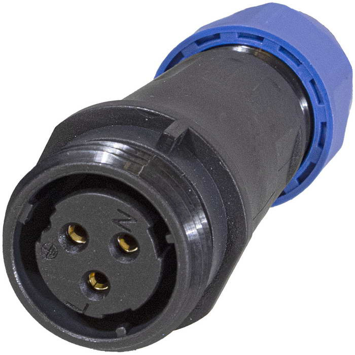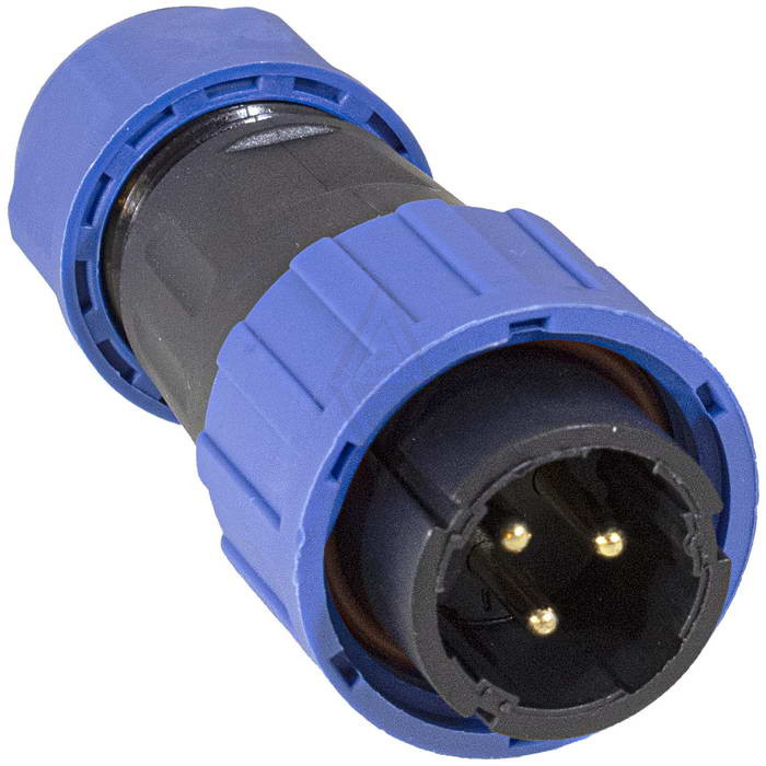 Герметичный разъем (комплект) RUICHI SP16-3P, кабельная вилка и розетка, 3 контакта, IP68, 250 В, -25...+85 °C, винтовой зажим корпус PA66 UL94V-0 черный, накидные гайки синие. Разъем состоит из двух кабельных частей вилки и розетки. Герметичный разъем соответствует высокой степени защиты, что гарантирует работу разъемов при длительном погружении в воду (более 30 минут) на глубину больше 1 м.