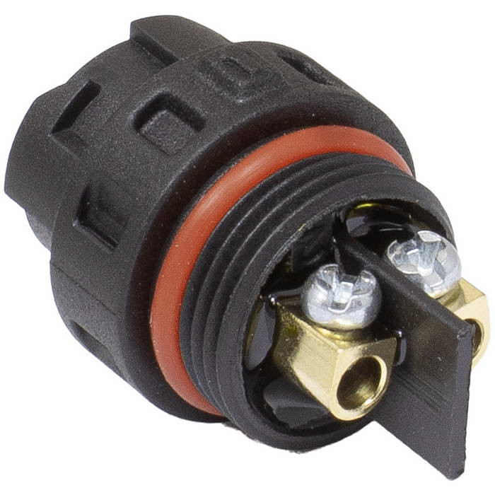 Герметичный разъем (комплект) SP16S-2P-F-M, кабель-кабель, 2 контакта, IP68, 250 В, корпус PA66 UL94V-0, черный, монтаж кабеля винтом, является пылезащищенным и влагозащищенным. Герметичный разъем соответствует высокой степени защиты, что гарантирует работу разъемов при длительном погружении в воду (более 30 минут) на глубину больше 1 м. Отличительной и главной особенностью является байонетное соединение, что делает монтаж быстрым и надежным. Такой тип соединения позволяет использовать разъемы в стесненных условиях.