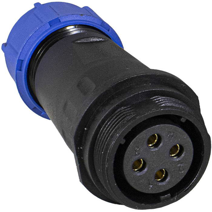 Разъём герметичный RUICHI SP20B-4P IP68, 4 контакта являются пыле и влагозащищенным. Разъем соответствует высокой степени защиты (IP68), что гарантирует работу разъемов при длительном погружении в воду (более 30 минут) на глубину больше 1м., а винтовое подключение к кабелю, делает монтаж еще более простым и менее затратным, и не требует использования специального инструмента.