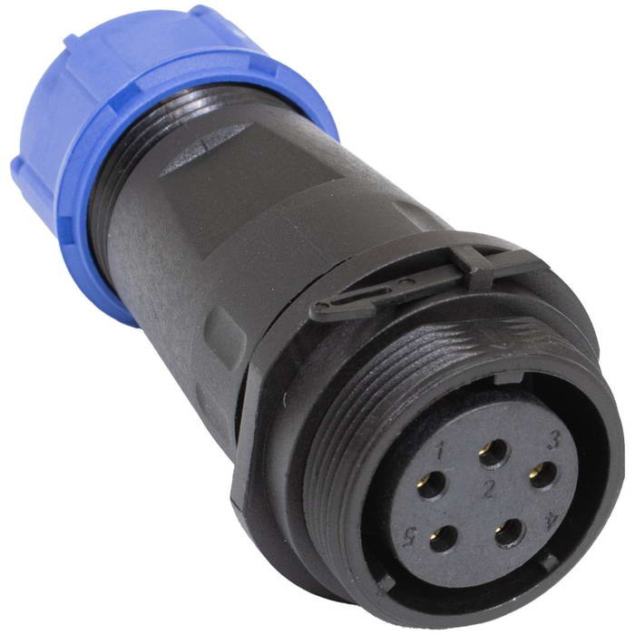 Разъём герметичный RUICHI КД-020-5 IP68, 5 контактов являются пыле и влагозащищенным. Разъем соответствует высокой степени защиты (IP68), что гарантирует работу разъемов при длительном погружении в воду (более 30 минут) на глубину больше 1м., а винтовое подключение к кабелю, делает монтаж еще более простым и менее затратным, и не требует использования специального инструмента.
