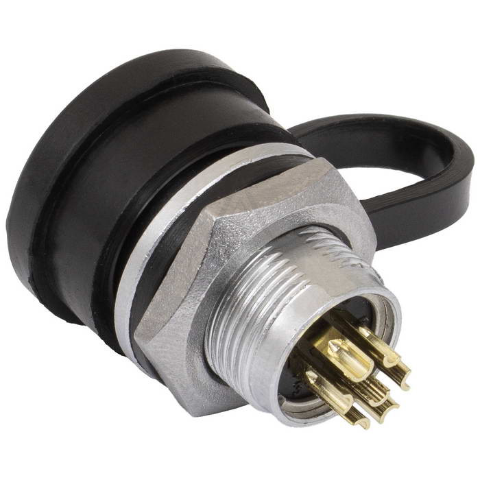 Комплект быстросъемного разъема push-pull кабель-блок RUICHI SR12-12/MF7P, 7-ми контактный, диаметр кабеля 4-6,5 мм, 5 А, IP67, -40…+85°С, корпус хромированная латунь, представляет собой металлический герметичный круглый соединитель с быстросъемным push-pull сочленением. Данное соединение обеспечивает надежность сочленения ответных частей в отличие от обычного резьбового соединения. Главная особенность разъемов – работоспособность в любых условиях эксплуатации.