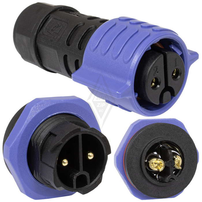 Герметичный разъем (комплект) SZC20B-2P-M-FB, кабель-блок, 2 контакта, IP68, 250 В, корпус PA66 UL94V-0, черный, является пылезащищенным и влагозащищенным. Герметичный разъем соответствует высокой степени защиты, что гарантирует работу разъемов при длительном погружении в воду (более 30 минут) на глубину больше 1 м. Отличительной и главной особенностью является байонетное соединение, что делает монтаж быстрым и надежным. Такой тип соединения позволяет использовать разъемы в стесненных условиях.