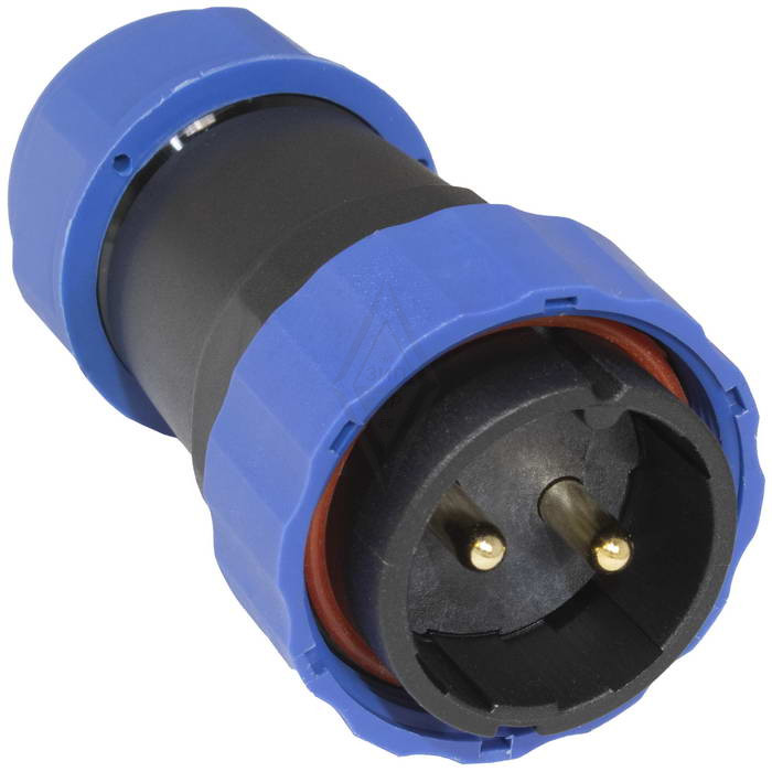 Герметичный разъем с заглушкой SZC 28 2P-M-FB, вилка-розетка, 2 контакта, диаметр входящего кабеля 15 мм, IP68, 45 А, 250 В, корпус PA66 UL94V-0, черный, накидные гайки синие является пылезащищенным и влагозащищенным. Герметичный разъем соответствует высокой степени защиты, что гарантирует работу разъемов при длительном погружении в воду (более 30 минут) на глубину больше 1 м.