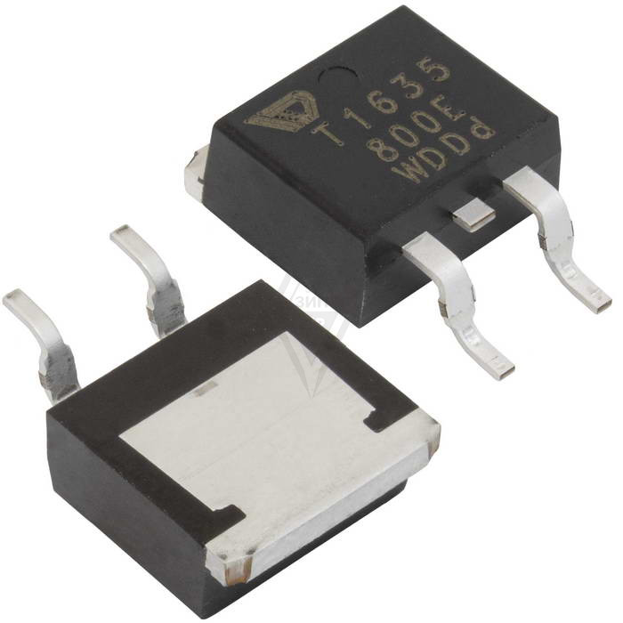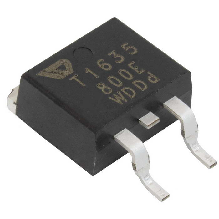 T1635-800E высокотемпературный (Tj = 150 C) трехквадрантный симистор (триак) для поверхностного монтажа в корпусе TO-263 (D2PAK). Максимальное обратное напряжение 800 Вольт, максимальный коммутируемый ток 16 Ампер, предельная скорость нарастания обратного напряжения (dV/dt) 1000 В/мкс. Ток удержания не более 45 мА. Не требует дополнительного снаббера.