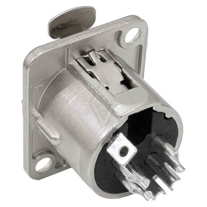 Разъём микрофонный XLR RUICHI TD-397 5-контактов с фиксатором комплект вилка+гнездо, использует балансовый метод подключения. Наиболее часто применяется в аудио-видео аппаратуре, а также для различного вида светового оборудования. Разъёмы XLR используются для симметричной передачи сигнала. Корпус обеспечивает дополнительную степень безопасности и защищенности для внутренних контактов