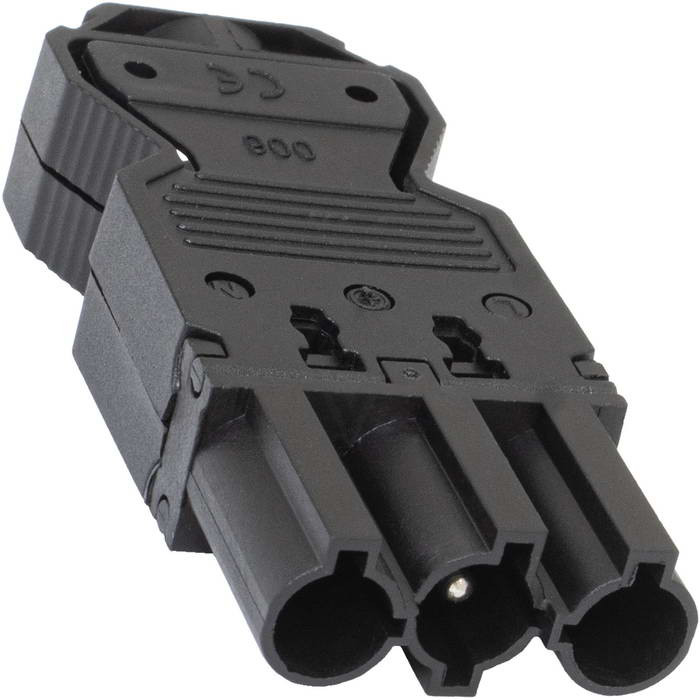 Коннектор трехполюсный (разъем male) RUICHI ТР-009-2, 16 А, 250 В, пластиковый, черный применяется для монтажа электропроводки на выставочных стендах, в производственных и офисных помещениях.