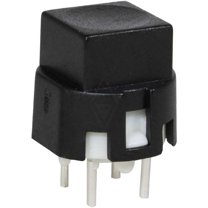 Миниатюрная кнопка без фиксации RUICHI TS4-1BN, 4 контакта, корпус черный круглый, кнопка черная квадратная – это изделие модульной конструкции, которое используется для создания устройств коммутирования электрических цепей или других сигналов.
