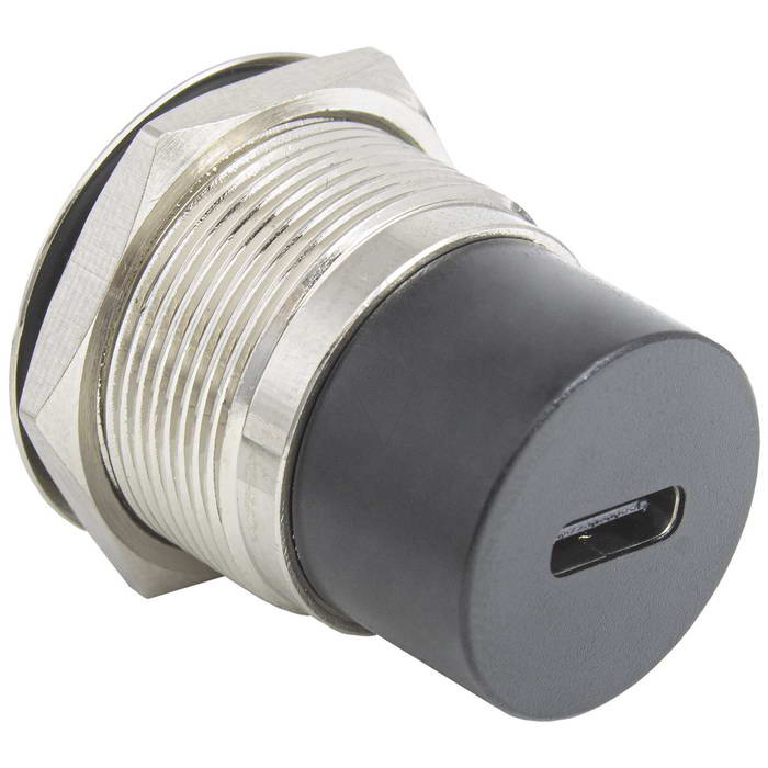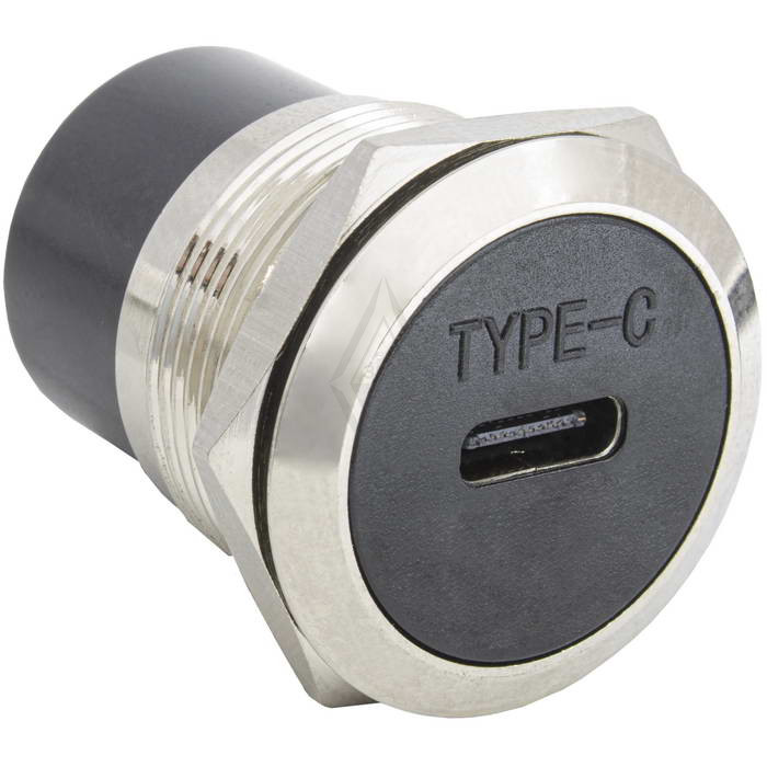 Панельный модуль (переходник) передачи данных USB Type C RUICHI TYPE-C F-F PN, прямой порт USB, 5В, 5А, с пылезащитной крышкой, крепление гайка с резьбой, корпус пластиковый, цвет металлический - универсальная последовательная шина, отвечающая за передачу данных между устройствами через прямой порт USB Type-C.