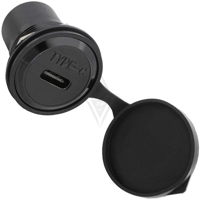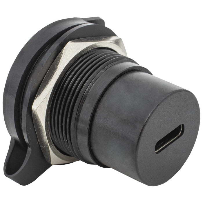 Панельный модуль (переходник) передачи данных USB Type C RUICHI TYPE-C F-F PN, прямой порт USB, 5В, 5А, крепление гайка с резьбой, корпус пластиковый, цвет черный - универсальная последовательная шина, отвечающая за передачу данных между устройствами через прямой порт USB Type-C.