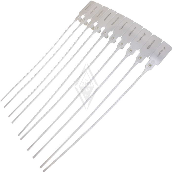 Для пломбировки объекта от несанкционированного доступа Материал: полипропилен Цвет: красный, желтый, белый, зеленый, оранжевый, синий Температура эксплуатации: от -40 °С до +65 °С Маркировка: 7-значный индивидуальный цифровой код Усилие на разрыв: 40 кг Цифровой код каждой пломбы является уникальным и подлежит регистрации при опломбировании объекта Нанесение логотипов и надписей по шаблону заказчика