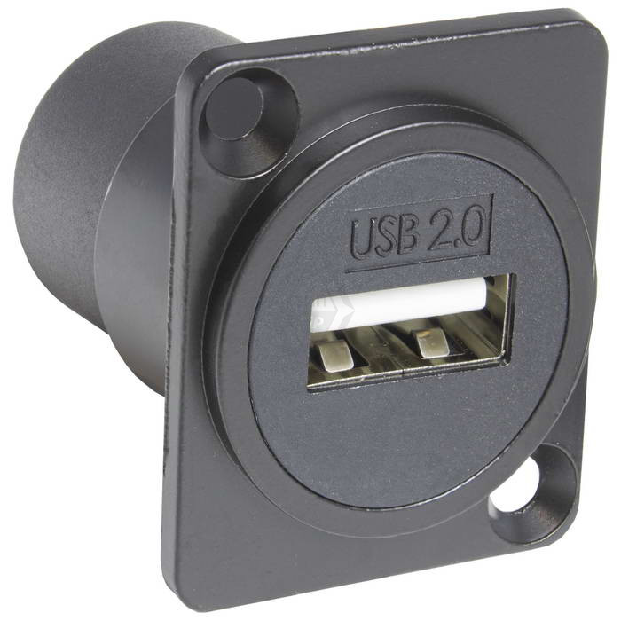 Панельный модуль (переходник) передачи данных USB RUICHI USB 2.0 A(F)-A(F) PS, прямой порт USB, 5В, 5А, крепление винты/саморезы, корпус пластиковый, цвет черный - универсальная последовательная шина, отвечающая за передачу данных между устройствами через прямой порт USB 2.0.