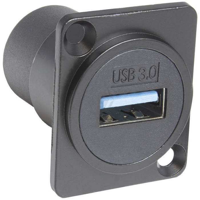 Панельный модуль (переходник) передачи данных USB RUICHI USB 3.0 A(F)-A(F) PS, прямой порт USB, 5В, 5А, крепление винты/саморезы, корпус пластиковый, цвет черный - универсальная последовательная шина, отвечающая за передачу данных между устройствами через прямой порт USB 3.0.