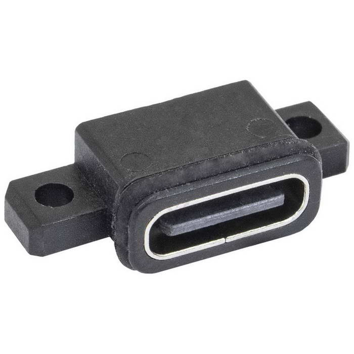 Разъём USB3.1-TYPE-C 24PF C IPX8-001, 2 контакта, 5 А, 20 В, 40 мОм, корпус пластиковый черный с проушинами под крепление - универсальная последовательная шина, отвечающая за передачу данных между устройствами. Через TYPE-C подключенные девайсы получают энергию для работы и зарядки, поэтому гнездами такого типа оснащают power-банки и зарядные устройства. За питание отвечает пара или две пары контактов.
