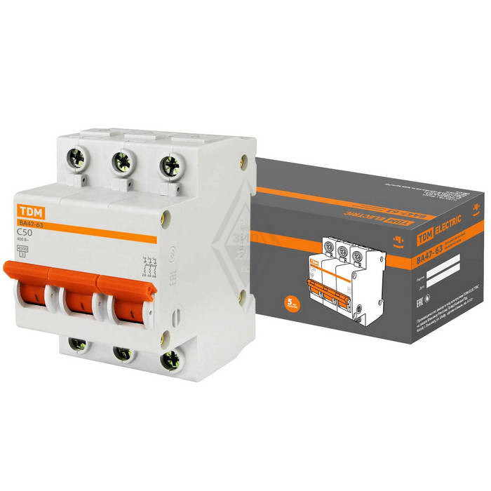 Автоматический выключатель ВА47-63 3Р 50А 4.5кА х-ка С TDM арт.118957