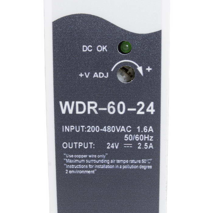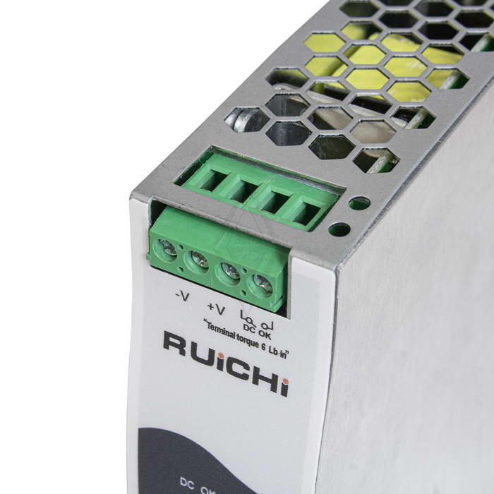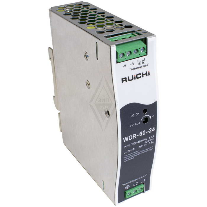 Блок питания на DIN-рейку RUICHI WDR-60-24, 100-240 В (АС) 2,5 А, 24 В, в металлическом корпусе представляет собой преобразователь из напряжения переменного тока (AC) в напряжение постоянного тока (DC) большой мощности модульного типа. Отличительными особенностями импульсных блоков питания на на DIN-рейку является, высокая мощность и отказоустойчивость, и широкий диапазон рабочей температуры - от -30 до +70 °С.