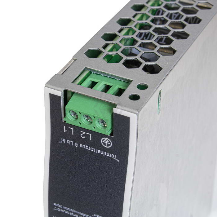 У источников питания на DIN-рейку широкий диапазон входного напряжения 100-240В переменного тока, малое собственное потребление, в них встроены все основные виды защиты.