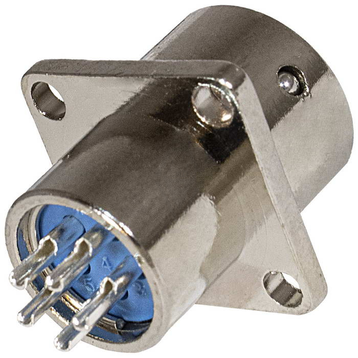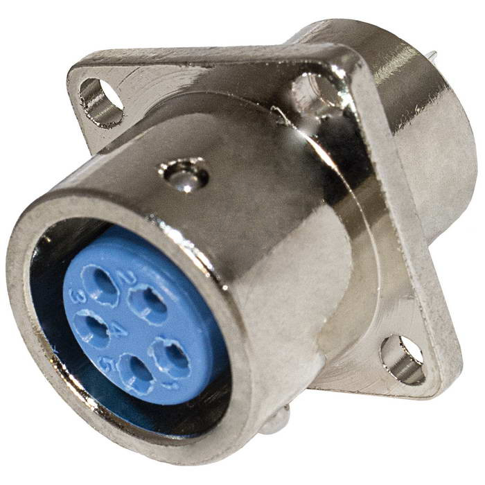 Разъём быстроразъёмный RUICHI XS12-5 (Zn) panel jack, 5-ти контактый представляет собой металлический герметичный круглый соединитель с быстросъемным байонетным сочленением. Байонетные защелки обеспечивают надежность сочленения ответных частей в отличие от обычного резьбового соединения. Главная особенность разъемов – работоспособность в любых условиях эксплуатации.