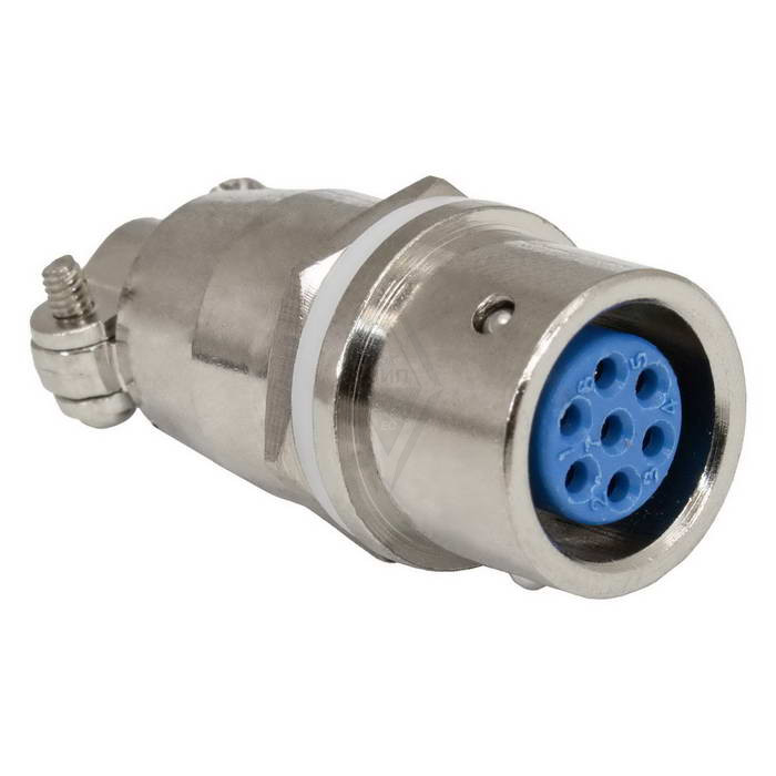 Разъём быстроразъёмный XS12-7 (Zn) panel-cable jack, 7-ми контактый представляет собой металлический герметичный круглый соединитель с быстросъемным байонетным сочленением. Байонетные защелки обеспечивают надежность сочленения ответных частей в отличие от обычного резьбового соединения. Главная особенность разъемов – работоспособность в любых условиях эксплуатации.