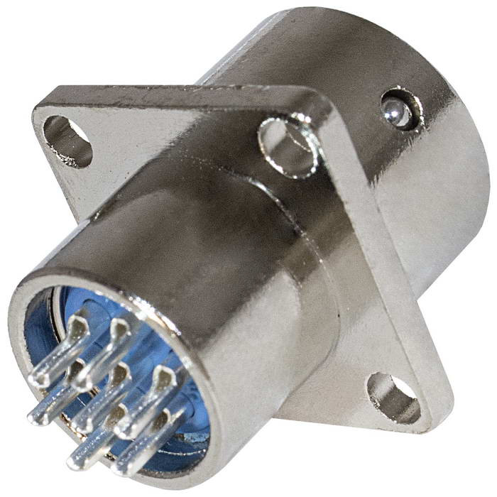 Разъём быстроразъёмный RUICHI XS12-7 (Zn) panel plug, 7-ми контактый представляет собой металлический герметичный круглый соединитель с быстросъемным байонетным сочленением. Байонетные защелки обеспечивают надежность сочленения ответных частей в отличие от обычного резьбового соединения. Главная особенность разъемов – работоспособность в любых условиях эксплуатации.