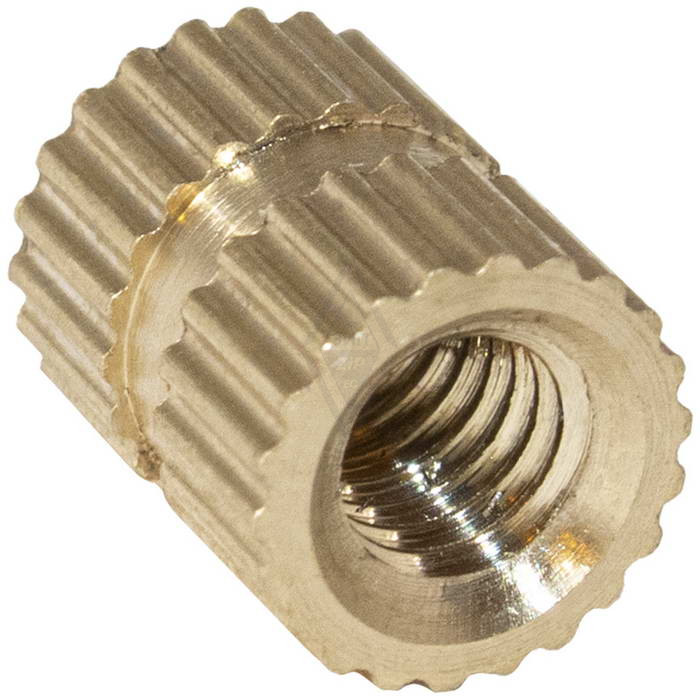 Втулка резьбовая глухая закладная RUICHI серии BLZB, резьба М3, диаметр 5.2 мм, 10х4 мм, латунь предназначена для заливки в пластиковые корпуса радиоаппаратуры в качестве крепежного элемента, которая обеспечивает более прочное винтовое соединение, чем саморезы. Втулки резьбовые закладные имеют негладкую боковую поверхность, которая препятствует проворачиванию, а также перемещению втулок вдоль оси при установке винта.