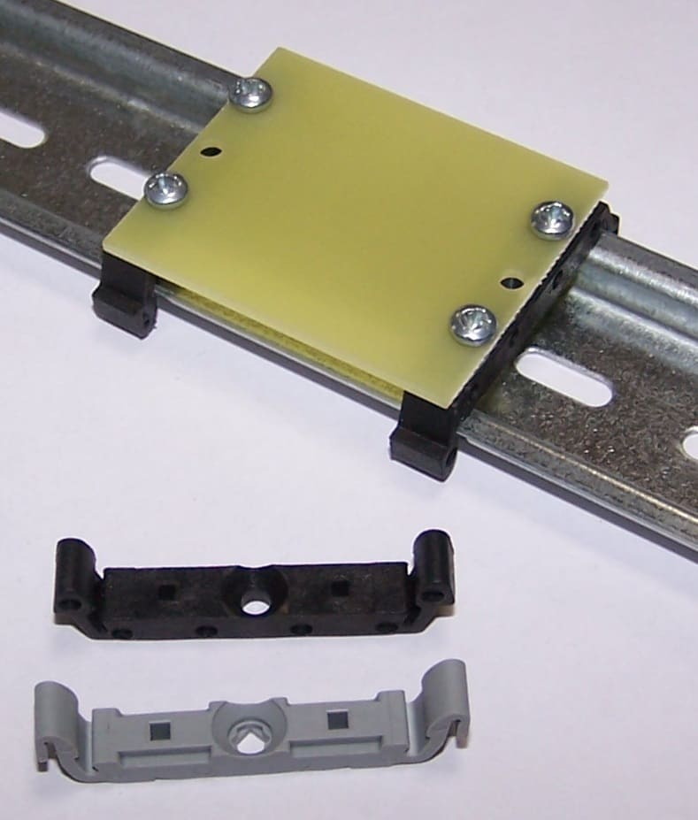 В связи с резким увеличением стоимости продукции WAGO, была разработана защелка на DIN-рейку (аналог защелки WAGO 209-120) и изготовлена корпусная прессформа. Наше изделие (черного цвета на фото) изготовлено из гроднамида ПА6-ЛТ-СВ30 В-1. Продается упаковками по 100 шт.